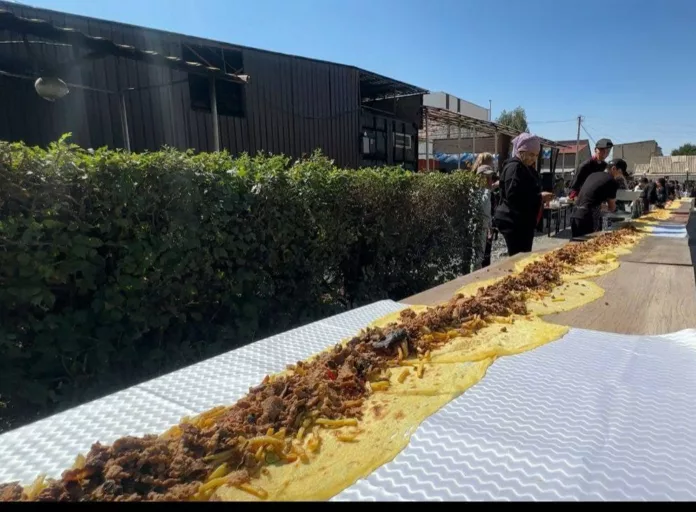 На неё ушло 25 кг мяса, 70 лавашей и 20 кг картофеля фри. Одна из местных фастфудных так отметила свое двухлетие.