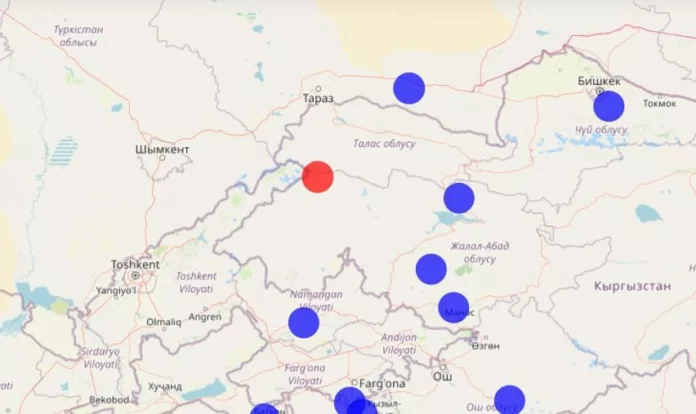 Эпицентр находился в Таласской области, в 85 км к от Таласа. В селе Башкы-Терек толчки ощущались силой 5,5 балла, в Таласе — 4 балла.
