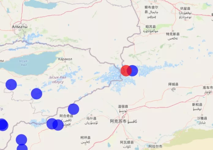 По его данным, очаг землетрясения располагался на территории Китая, в 165 км к востоку от Каракола.