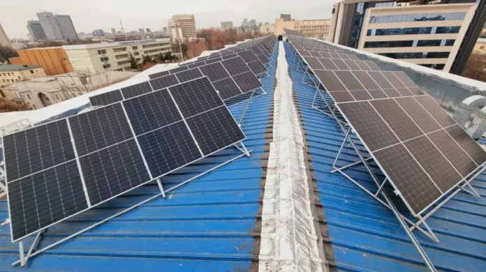 В рамках проекта на кровле устанавливаются солнечные панели. Их монтаж позволит существенно сократить энергозатраты и повысить энергоэффективность административного здания.