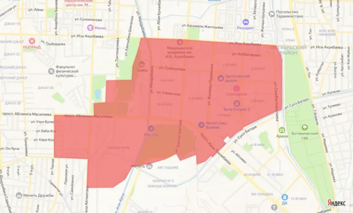 Отключение затронет микрорайоны № 3, 4, 5, 7, 8, 9 и 10. А также район, ограниченный пр. Ч. Айтматова, ул. Абдрахманова, ул. Бакаева, пр. Масалиева, ул. Токтоналиева, парком Ататюрка, ул. Ахунбаева, р. Аламедин, ЮБЧК, ул. Байтика Баатыра, р. Ала-Арча и ул. Семетей.