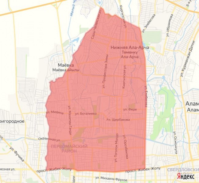 Ее отключат с 9:00 до полуночи. Район отключения ограничен улицами Куренкеева, Абдрахманова, Элебесова, Бельской, Саадаева, проспектами Жибек Жолу и Молодой Гвардии, а также БЧК и рекой Ала-Арча.