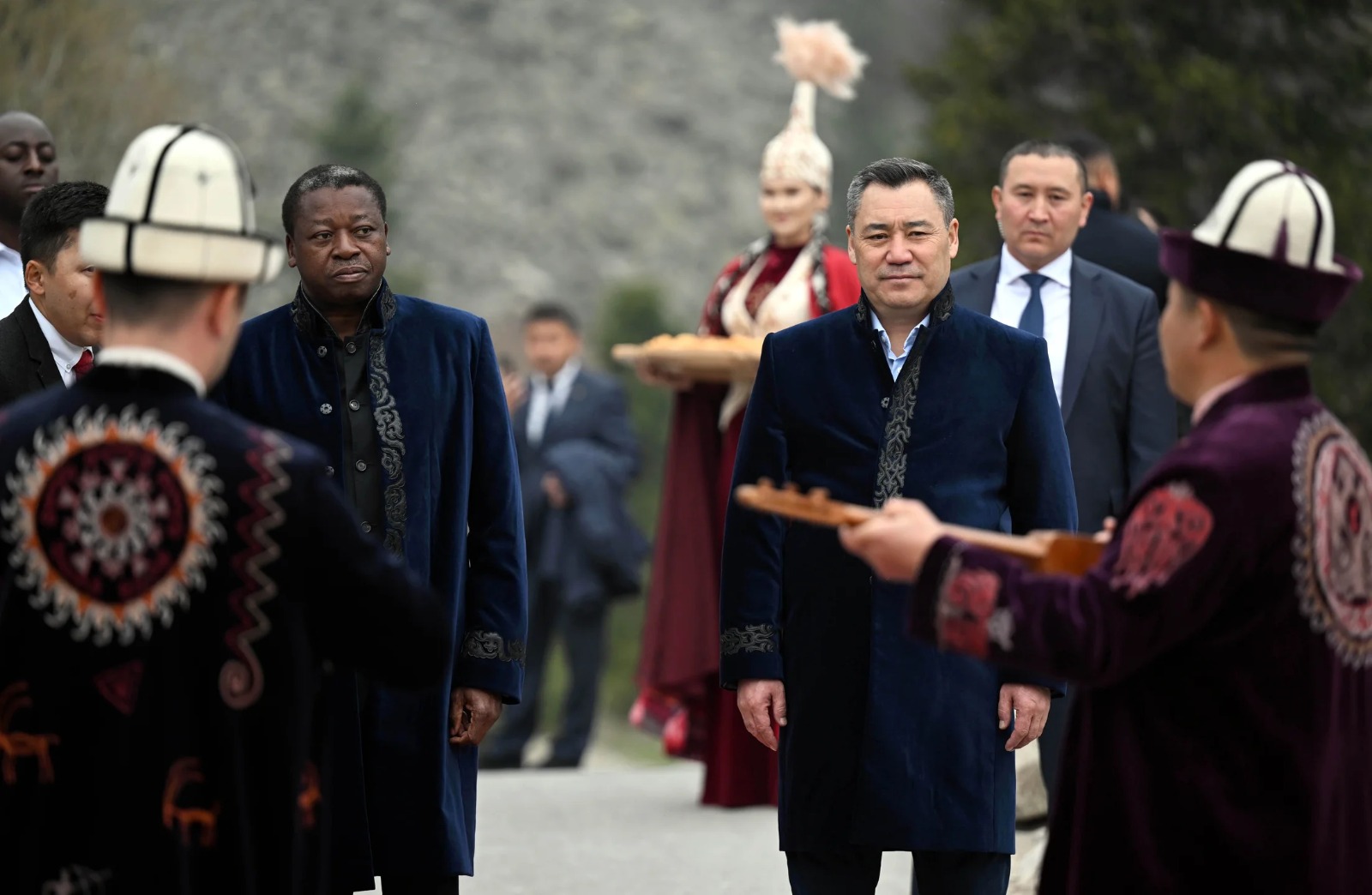 Президент Садыр Жапаров и председатель Совета министров Тоголезской Республики Фор Эссозимна Гнассингбе 28 апреля посетили этнокультурную программу, организованную в Государственном природном парке «Ала-Арча».