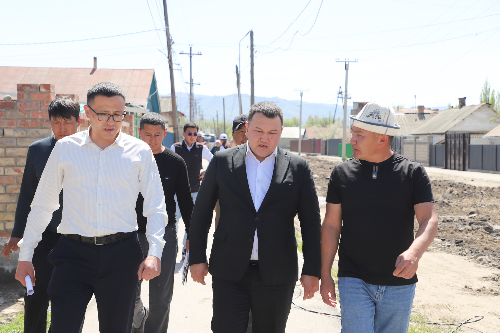 Бүгүн, Кыргыз Республикасынын Президентинин Талас облусундагы ыйгарым укуктуу өкүлү Эрмат Джумаев, Талас шаарынын вице-мэри Айбек Көчөрбаев жана тиешелүү жергиликтүү бийлик өкүлдөрү жол куруу иштеринин жүрүшү менен жеринде таанышышты.